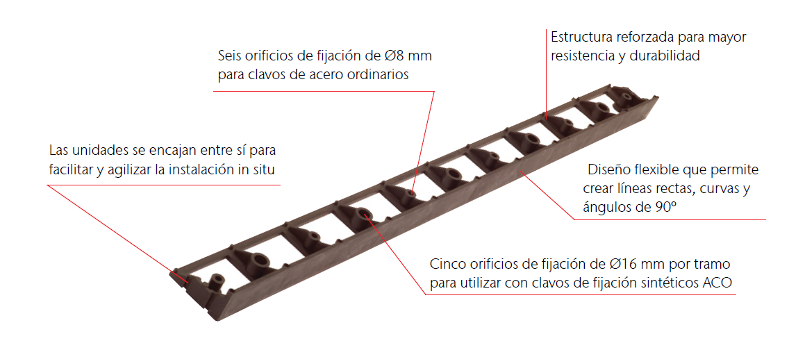 - Compatible con losas de pavimento, bloques, refuerzo de césped ACO Grass Grid y estabilizador de grava/gravilla ACO Gravel Grid