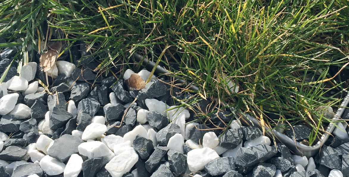 O ACO Border é fornecido em comprimentos de 1 metro e, graças ao seu design flexível, pode ser utilizado para criar linhas rectas, curvas ou ângulos de 90 graus. Uma vez instalado, o rebordo vertical é praticamente invisível, uma vez que fica oculto pela relva ou gravilha. Por conseguinte, pode ser utilizado com qualquer tipo de revestimento de pavimento, quer seja relva, gravilha/cascalho, canteiros de flores ou lascas de casca de árvore.